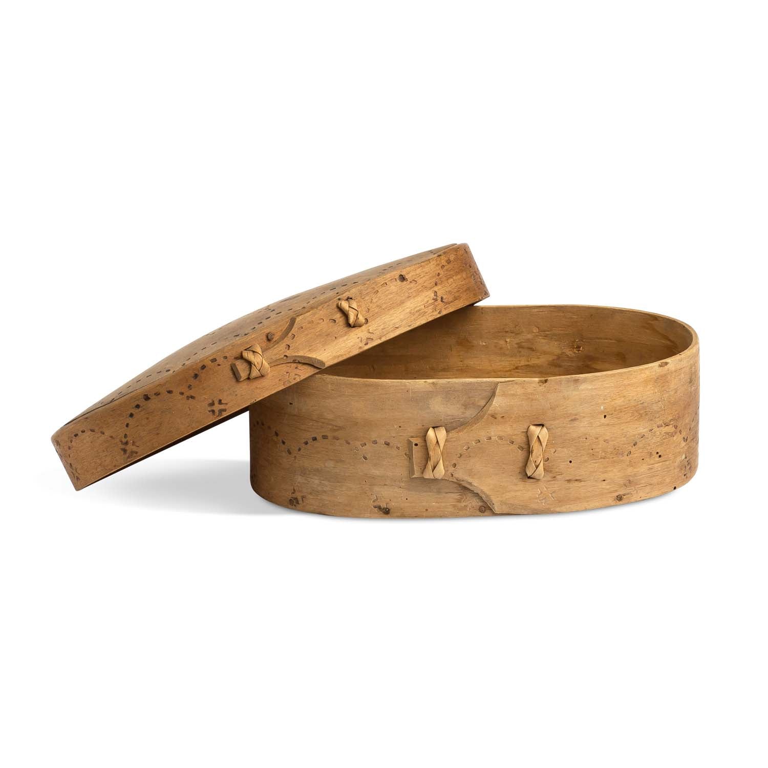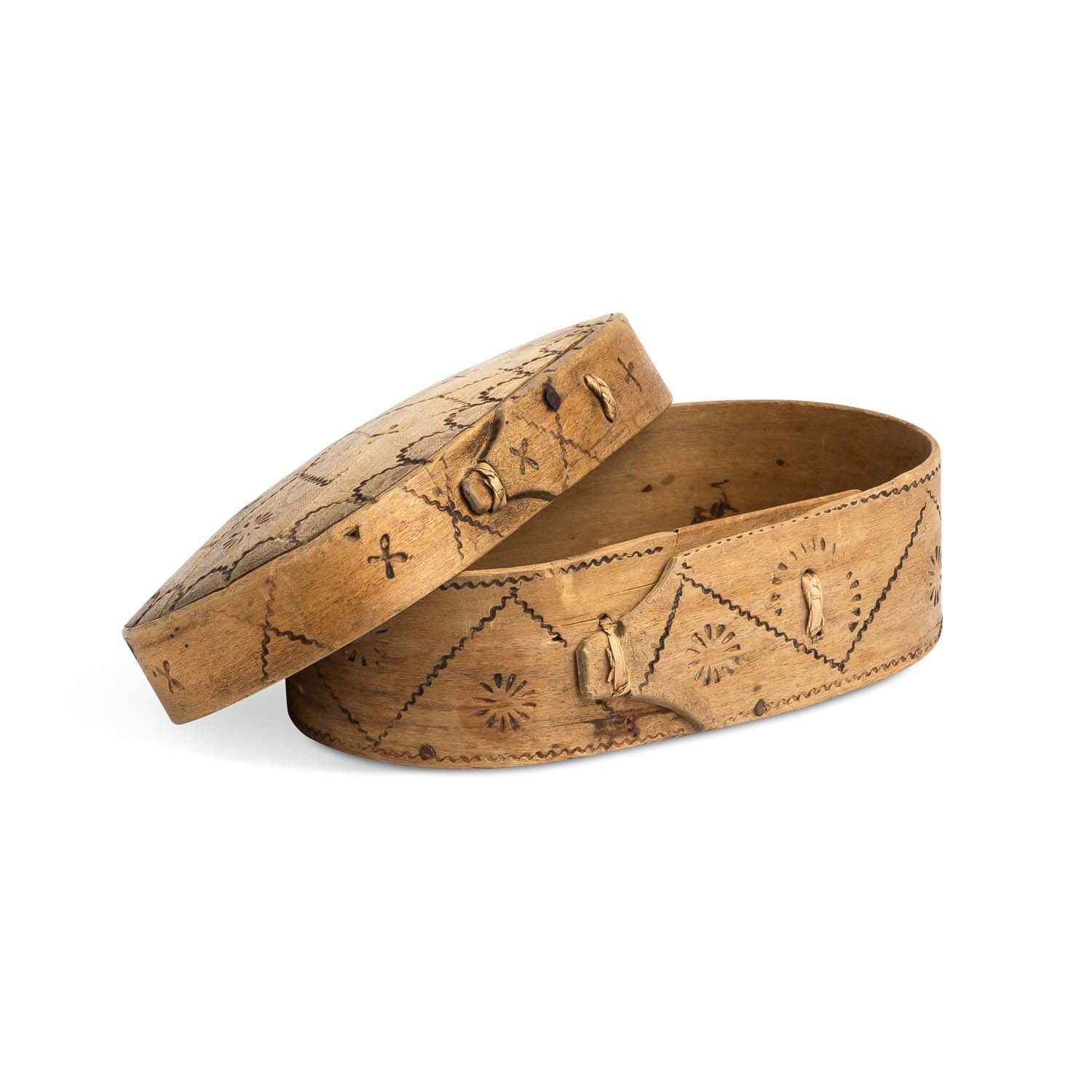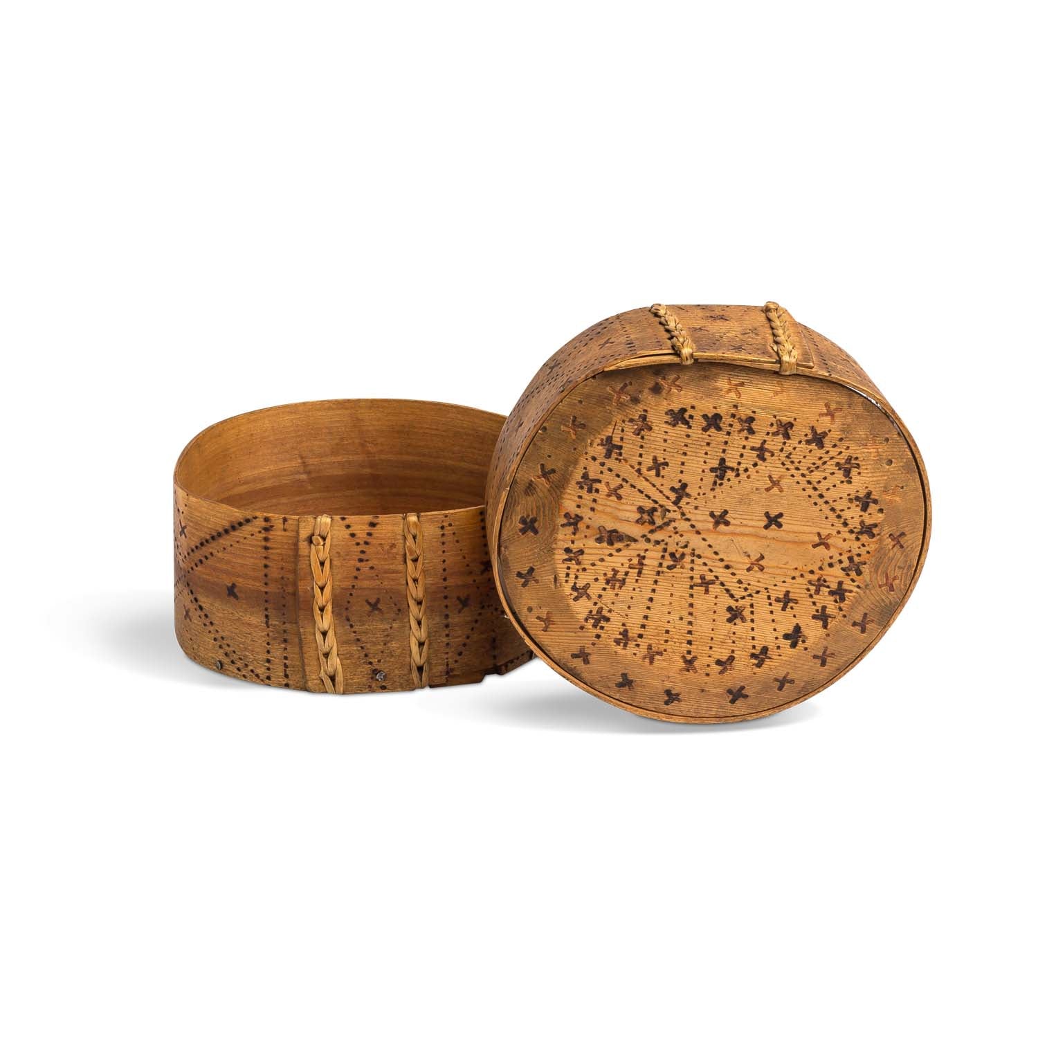 Antique Scandinavian bentwood "Tine" box, late 19th century. "Tine" boxes were used for storage throughout the Scandinavian region.