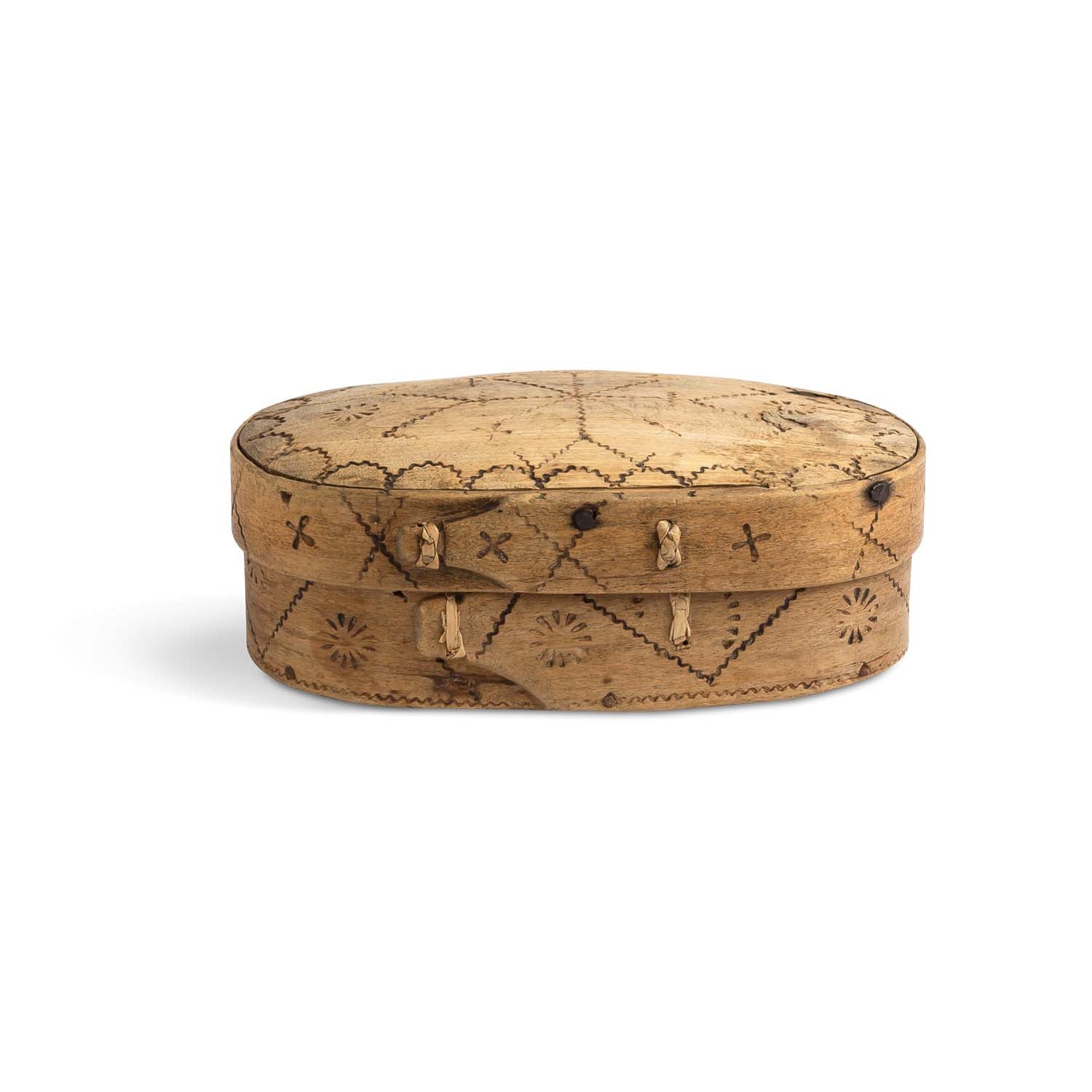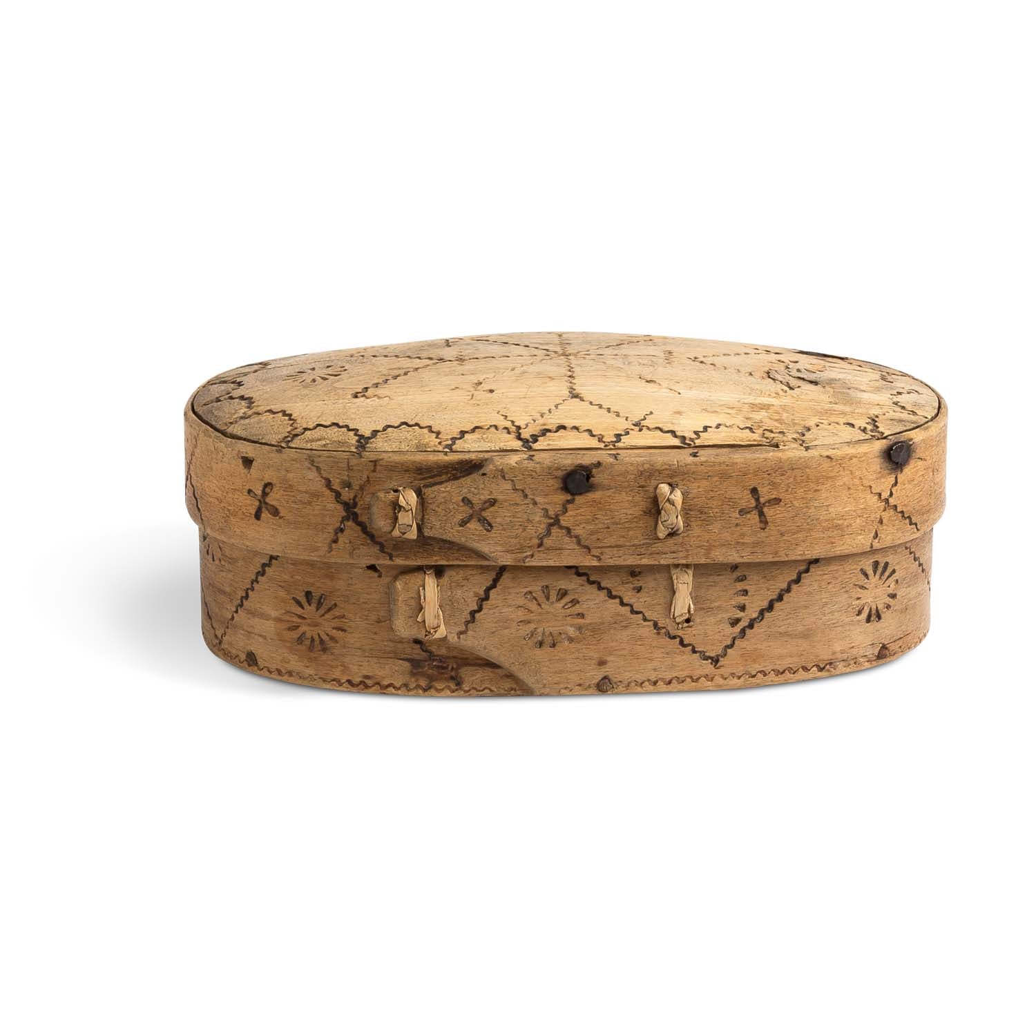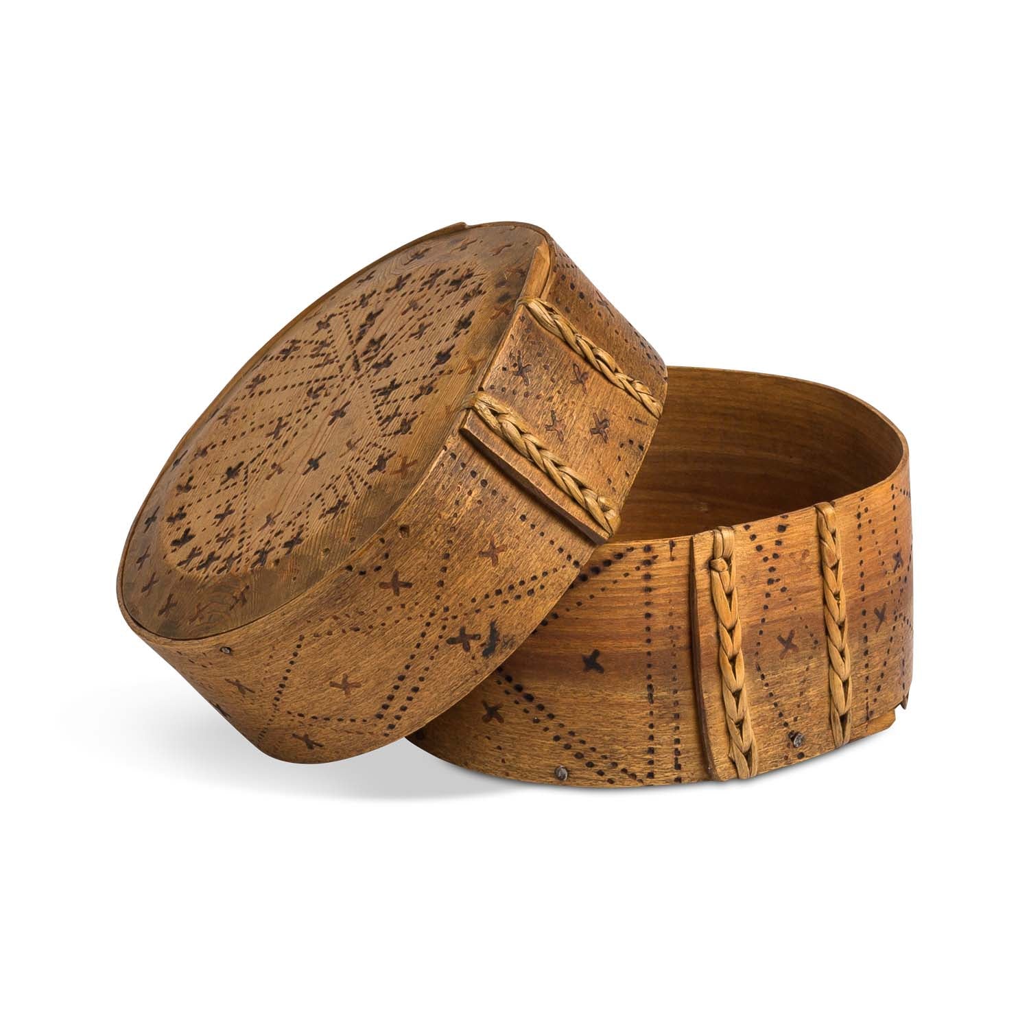 Antique Scandinavian bentwood "Tine" box, late 19th century. "Tine" boxes were used for storage throughout the Scandinavian region.
