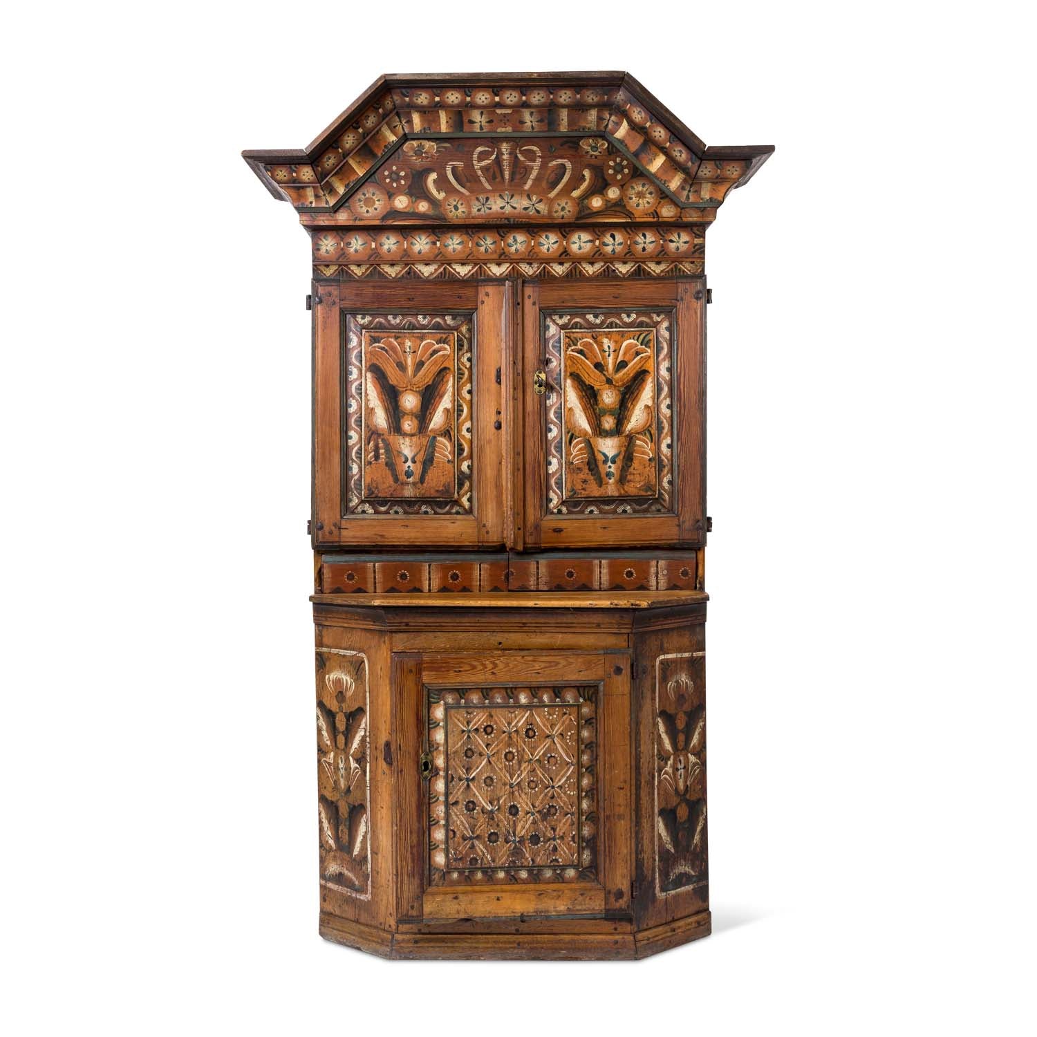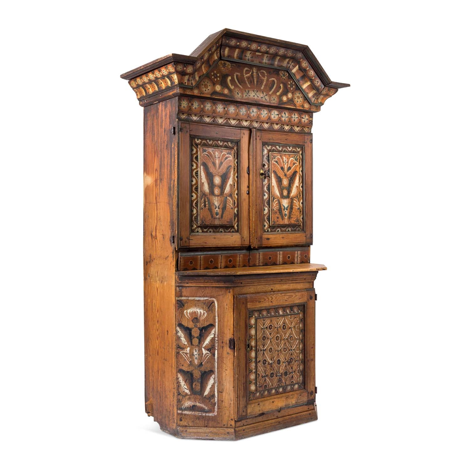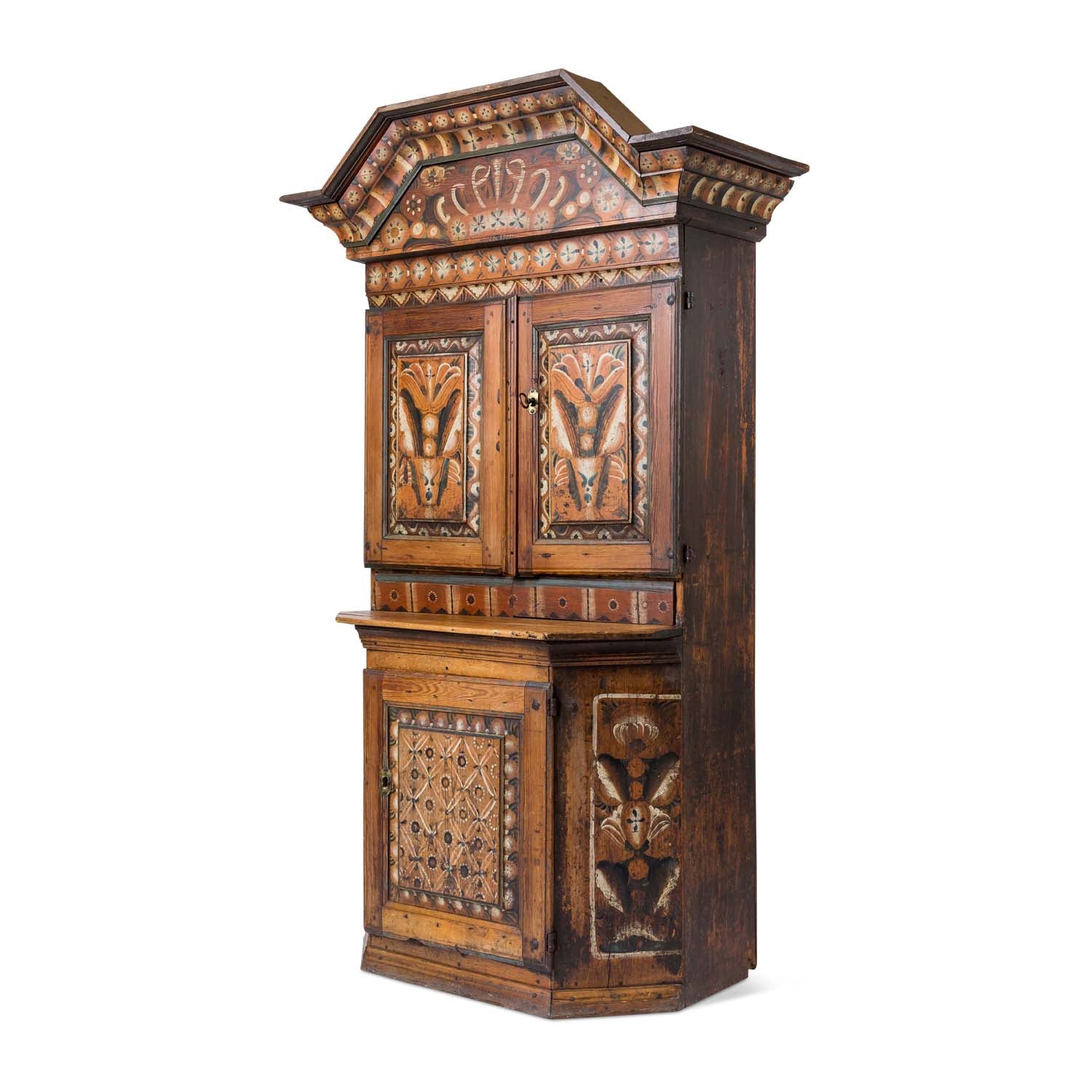 Swedish painted pine cupboard, dated 1796, retaining its original decoration.